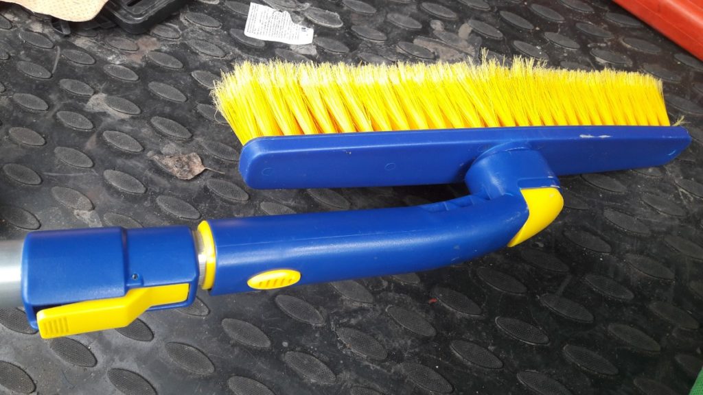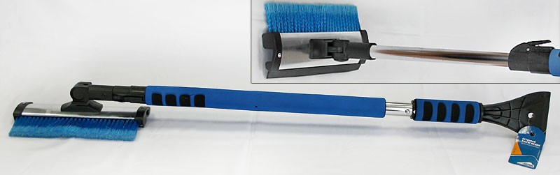 Sikat dilengkapi dengan pegangan teleskopik. Di ujung fixture adalah sambungan putar. Desain ini membuat pembersihan mesin dari salju dan es senyaman mungkin. Tidak ada keraguan tentang efektivitas produk.