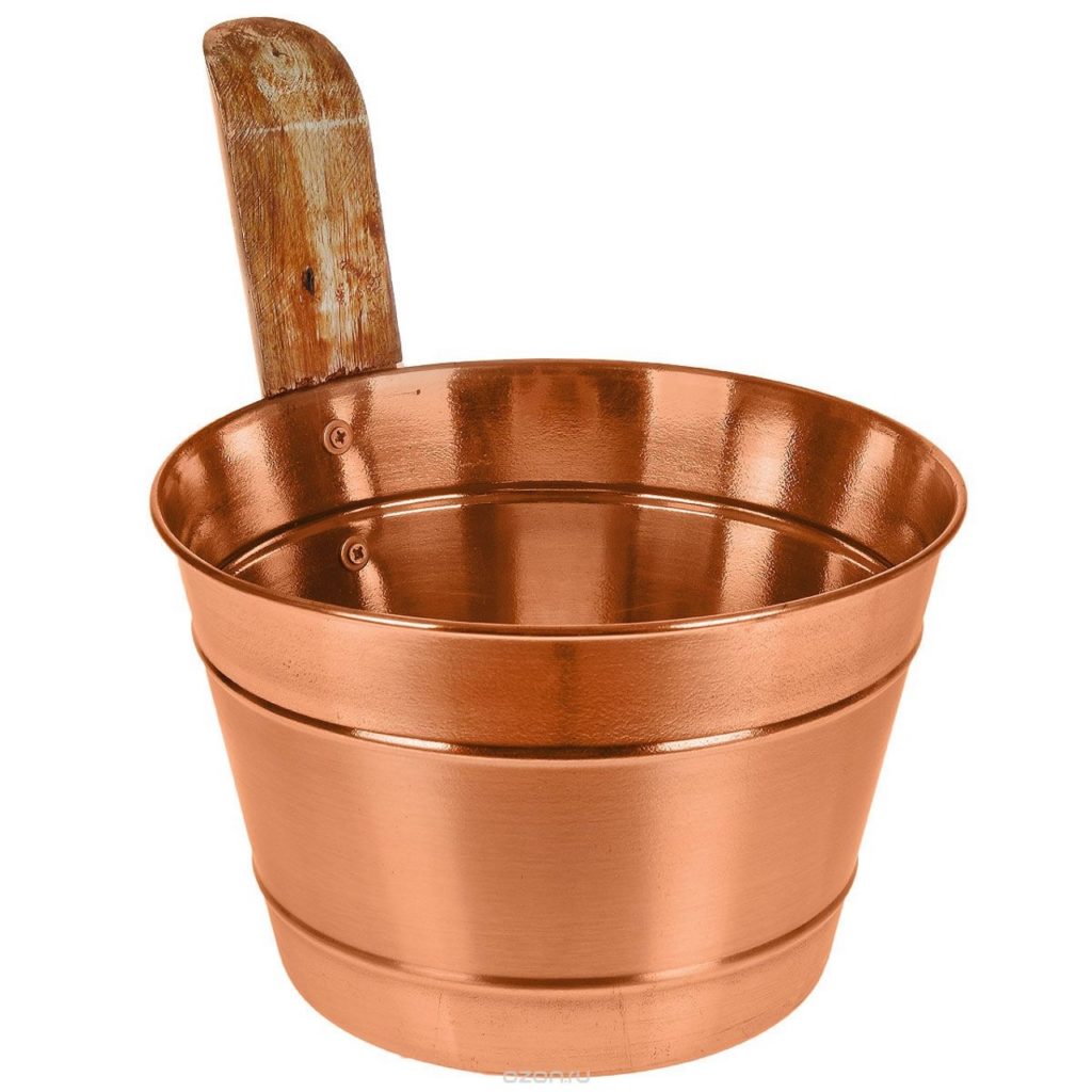 Perwakilan merek Rusia berikutnya, terbuat dari stainless steel, adalah produk ini. Ini secara harmonis cocok dengan interior sauna dan pemandian, yang memiliki desain cupronickel atau lapisan logam. Kapasitas produk ini adalah 4 liter, yang membuatnya nyaman untuk digunakan. Bahan berkualitas tinggi, tidak rentan terhadap korosi, akan berfungsi untuk waktu yang lama untuk menyenangkan pengunjung dan pemilik. Perlindungan terhadap kemungkinan luka bakar yang tidak disengaja disediakan oleh pegangan kayu panjang, yang terhubung dengan kuat ke tubuh.