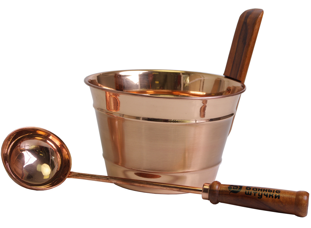 Juga, pabrikan India memproduksi satu set yang luar biasa untuk mandi dan sauna, yang terdiri dari wadah 4 liter dengan pegangan kayu dan ember tambahan dengan kapasitas 150 ml. Ini dirancang untuk menghasilkan uap dengan menuangkan air ke pemanas sauna. Untuk menghindari luka bakar akibat penguapan panas cairan, dilengkapi dengan pegangan kayu panjang yang nyaman. Bagian logam dari set terbuat dari tembaga berkualitas tinggi, yang tidak rentan terhadap efek destruktif dari korosi, yang memastikan masa pakai yang lama.