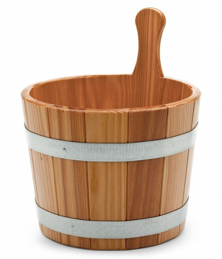 Salah satu barang produksi Finlandia yang paling terkenal adalah wadah untuk mandi dan sauna yang terbuat dari bambu. Popularitasnya dibenarkan oleh sifat-sifat bahan baku. Karena bambu memiliki sifat antibakteri yang tinggi, produk yang dibuat darinya praktis tidak rentan terhadap pembentukan jamur di permukaannya, yang sangat penting pada kelembaban tinggi di ruang uap. Dan kualitas bagus lainnya dari kayu ini adalah pengeringannya yang cepat tanpa adanya kelembaban, yang juga penting di tempat mandi. Sifat bahan baku seperti itu dalam pembuatan diperbaiki dengan perlakuan panas khusus. Kapasitas model ini adalah 5 liter. Ini adalah pilihan yang cukup nyaman untuk menyimpan cairan saat mengunjungi bak mandi, sapu uap, persiapan herbal, penyiraman, penyiraman ruang uap di atas batu.Untuk kenyamanan saat digunakan, pegangan bambu memanjang dipasang pada alasnya.