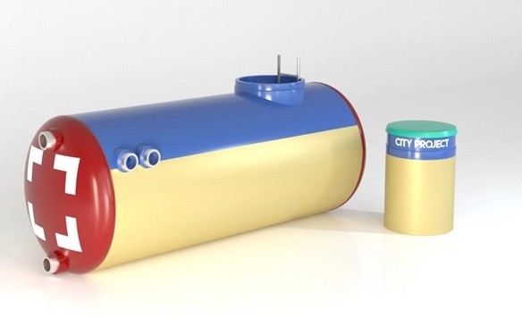 Untuk rumah pribadi, perlu membawa persediaan air minum yang besar. Untuk tujuan tersebut, tangki bawah tanah khusus dengan volume 5500 liter disediakan. Produk dapat digali ke dalam tanah atau dipasang di halaman.