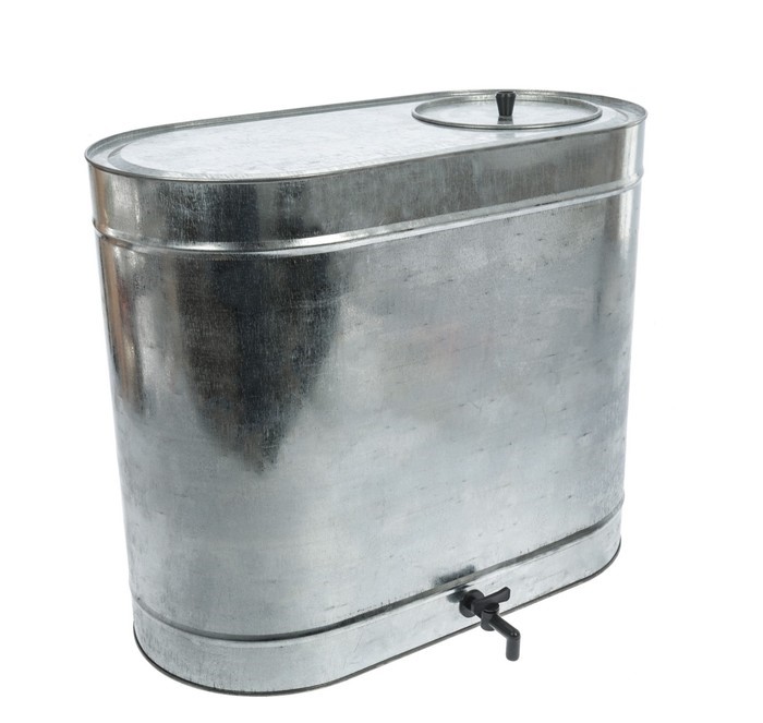 Versi klasik wadah dirancang untuk menyimpan air minum. Produk ini terbuat dari seng, sehingga bahkan dengan penggunaan jangka panjang tidak menimbulkan korosi. Kapasitas produk adalah 32 liter, sehingga sering dipilih untuk kondisi apartemen.