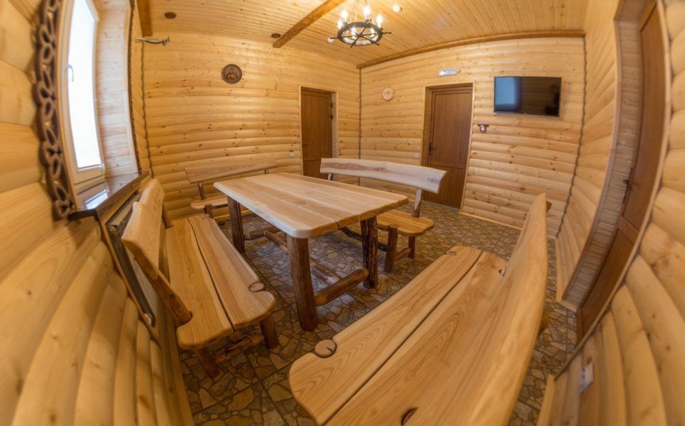 Kompleks pemandian berada di sebelah hutan, ada kamar hotel dari berbagai kelas di dekatnya. Anda dapat memesan salah satu dari tiga kamar. Kamar dapat menampung hingga 12 orang. Ada dua jenis ruang uap: Finlandia dan Rusia. Kamar kecil ini memiliki kolam renang yang terang dan ruang perjamuan untuk 10 orang. Kamar rata-rata berisi kolam dengan geyser, ruang uap dengan sapu. Di dalamnya Anda bisa bersantai bersama keluarga atau bersama teman hingga 8 orang.Kamar besar dengan ruang perjamuan besar dan Jacuzzi, ada meja biliar. Ketiga kamar memiliki shower, toilet, kursi pijat, ruang makan, lounge, musik, karaoke, DVD, pusat musik, TV, AC. Di musim dingin, Anda dapat keluar dari ruangan dan melompat langsung ke tumpukan salju. Staf yang ramah mengawasi pengisian uap dan salju.