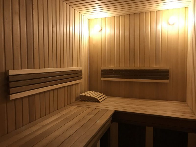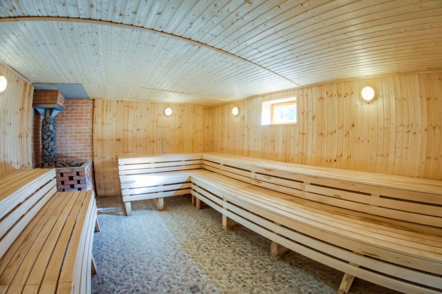 Sauna Finlandia - ruang uap dengan udara kering (kelembaban 20% pada suhu 90 derajat) bergantian dengan kolam dingin. Jika ada penyakit jantung dan pembuluh darah, mandi uap seperti itu dilarang.