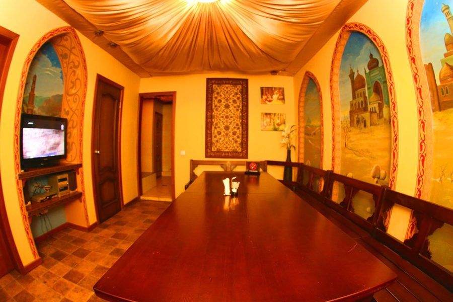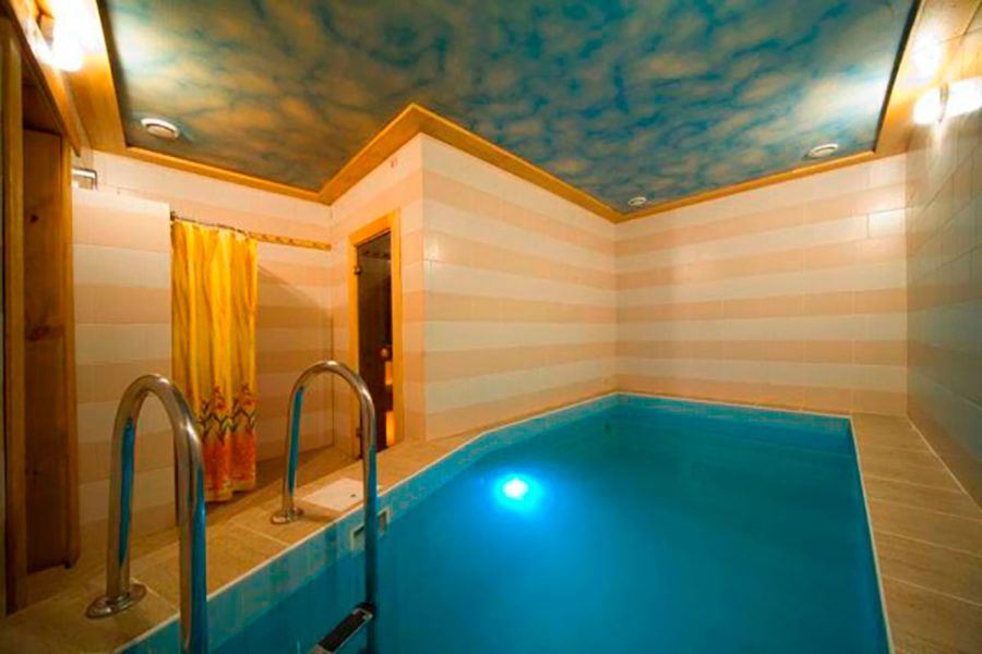 Tempat yang nyaman dengan karaoke, biliar, dan kolam hangat. Kebersihan khusus di kamar dijamin oleh staf yang sopan. Pengunjung ditawari layanan di tiga kamar. Kamar besar dengan pemandian Rusia dirancang untuk 15 orang. Kamar memiliki kolam renang 4 meter dengan filter dan pencahayaan sedalam 2 m, meja yang nyaman, biliar. Kamar oriental dengan sauna Finlandia dapat menampung 12 orang. Kolam renang dengan air mancur panas, barbekyu, catur, dan backgammon - pengunjung akan puas. Ruang VIP akan menampung perusahaan yang terdiri dari 15 orang, menggunakan ruang uap panas dan kolam dingin dengan air terjun. Semua kamar memiliki zona musim panas, karaoke. Penggemar "sofa" istirahat dapat menonton TV kabel. Anda dapat memesan makanan ke kamar Anda atau membawa makanan dan minuman Anda sendiri. Daftar harga berisi layanan tambahan: sewa sandal, sapu, pijat. Ada parkir gratis di dekat kompleks. Fasilitas maksimal dengan harga setia plus manfaat untuk kategori warga tertentu.