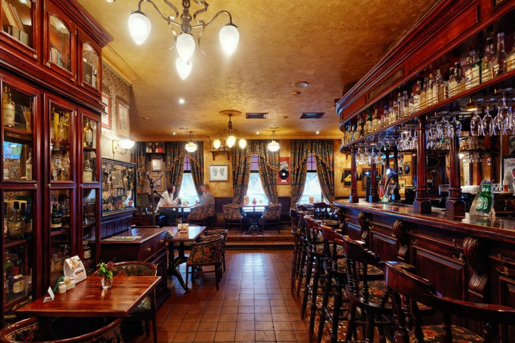 Bekerja sejak tahun 2004. Ini adalah pub Inggris asli dengan bar berukir besar dan sofa kulit merah. Lampu desainer bertanggung jawab atas penerangan. Perpaduan antara wallpaper, tekstil, karpet bermotif di lantai dan poster-poster tua membenamkan pengunjung dalam suasana Old England. Di sini Anda bisa melihat lemari kayu mahoni yang dipenuhi buku bahkan potret Ratu Elizabeth.