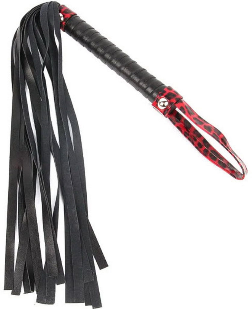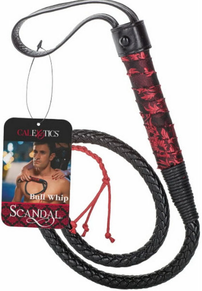 Koleksi VIP aksesoris erotis Skandal Banteng Cambuk. Pegangan cambuk yang kokoh dihiasi dengan pola seorang desainer terkenal di masing-masing lingkaran benang merah mengkilap. Bagian ekornya tidak terlalu kaku, yang menghasilkan efek suara sensitif saat mengenai tubuh.