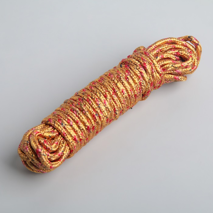 Inti terbuat dari poliamida, serat terbuat dari propilena. Tali ini dianggap gabungan: ringan, tahan lama, dan digunakan untuk waktu yang sangat lama. Itu dapat dilampirkan ke dinding di balkon atau di kamar mandi.