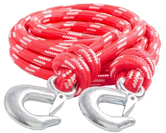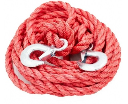 Kabel penarik sepanjang lima meter yang terbuat dari nilon penerbangan dilengkapi dengan pengait dengan kait di kedua sisinya. Kabel ini dirancang untuk kendaraan dengan berat tidak lebih dari 5 ton. Sifat-sifat material dijelaskan secara rinci di atas: tahan terhadap suhu dan kelembaban rendah. Produk kompak tidak memakan banyak ruang di bagasi.