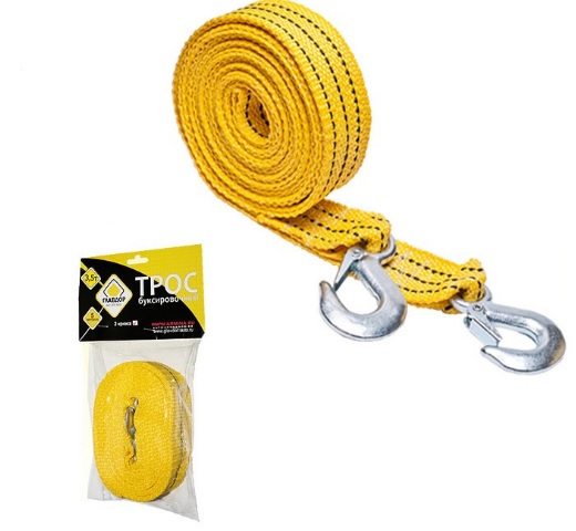 Model ini dirancang untuk menderek kendaraan dengan berat tidak lebih dari 5 ton.Untuk kenyamanan, set ini dilengkapi dengan tas dengan ritsleting. Karena pita itu terbuat dari nilon penerbangan dengan sifat yang sangat baik, itu tidak akan sobek baik dalam cuaca beku yang parah atau dalam cuaca basah. Kabel mematuhi norma dan aturan jalan. Ada 2 kait, kasing dengan ritsleting.