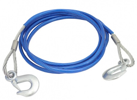 Kabel baja dengan dua kait yang dikepang memiliki diameter 8 mm. Panjang produk adalah 4 meter. Dirancang untuk mengangkut mobil tidak lebih dari 4,5 ton, dapat dilipat dengan kompak dan memakan sedikit ruang.