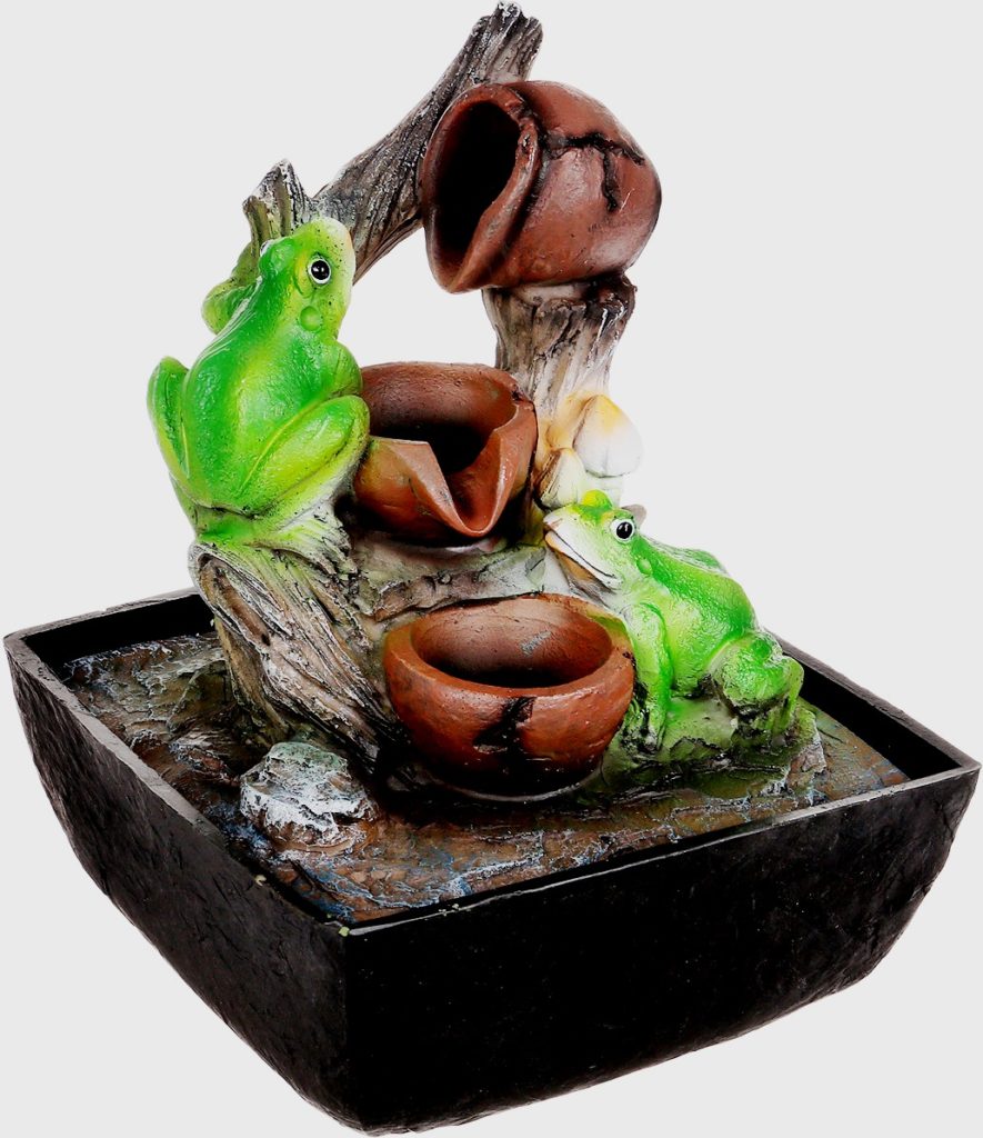 Air mancur meja dengan pencahayaan. Bahan produksi - poliresin. Pabrikan memilih katak sebagai karakter utama. Hal kecil yang sangat baik dan elegan yang akan menghiasi ruangan mana pun.