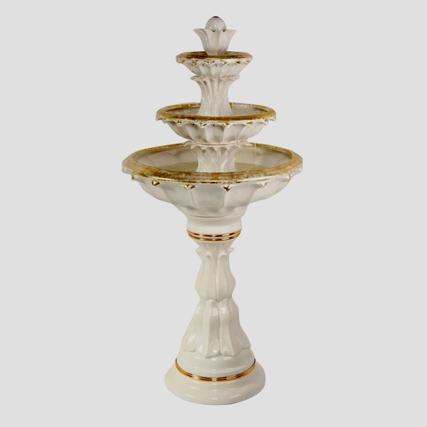 Perhatikan saran para ahli dan beli produk ini. Ukurannya besar, terdiri dari tiga mangkok yang disusun berjenjang. Vodichka menciptakan kebisingan, meluap melalui pipa logam. Dalam pembuatan porselen alami digunakan. Perakitan, pengecatan dan pengecoran dilakukan dengan tangan.
