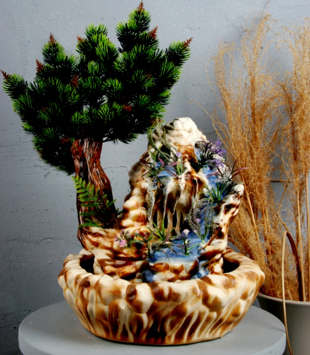 | Desktop | Ciri khasnya adalah ukurannya yang kecil dan harga yang terjangkau. Tetapi pabrikan memproduksi model yang tingginya mencapai satu meter. Pada dasarnya, mereka ditempatkan di pot bunga keramik atau polietilen, dimuliakan dengan bunga dan lumut, pohon bonsai dipasang di dekatnya atau batu diletakkan. Biasanya, mereka dijual dengan lampu latar. Dilengkapi dengan silent pump. |