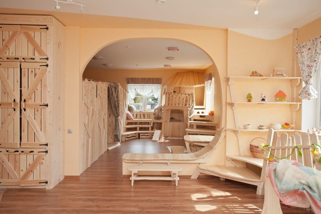 Cabang di kota terletak di apartemen 4 kamar, yang juga dilengkapi dengan semua yang diperlukan untuk perkembangan anak yang harmonis.