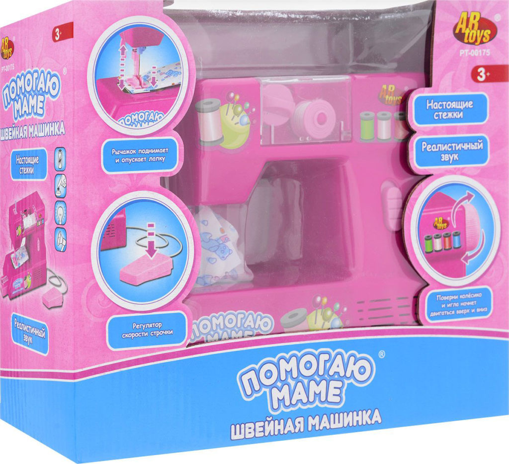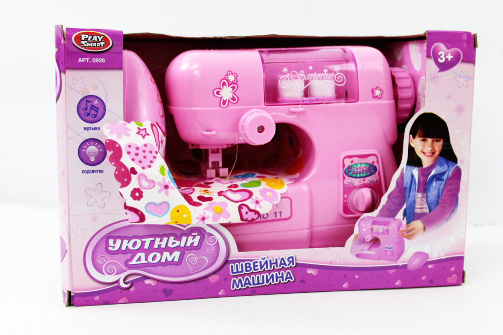 Mainan ini mampu membuat jahitan nyata dan menyesuaikan kecepatan jahitan. Belajar menjahit dengan bantuannya, gadis kecil menjadi lebih perhatian, rajin, akurat, mereka mengembangkan keterampilan motorik halus. Didukung oleh baterai, tidak termasuk dalam kit, yang terdiri dari tambalan kain dan benang. Mainan itu, secara lahiriah sangat mirip dengan mesin jahit asli, dibedakan oleh kualitas bangunan yang baik dan desain yang cerah, dan para gadis sangat menyukainya. Hal ini dibuktikan dengan respon positif dari orang tua.