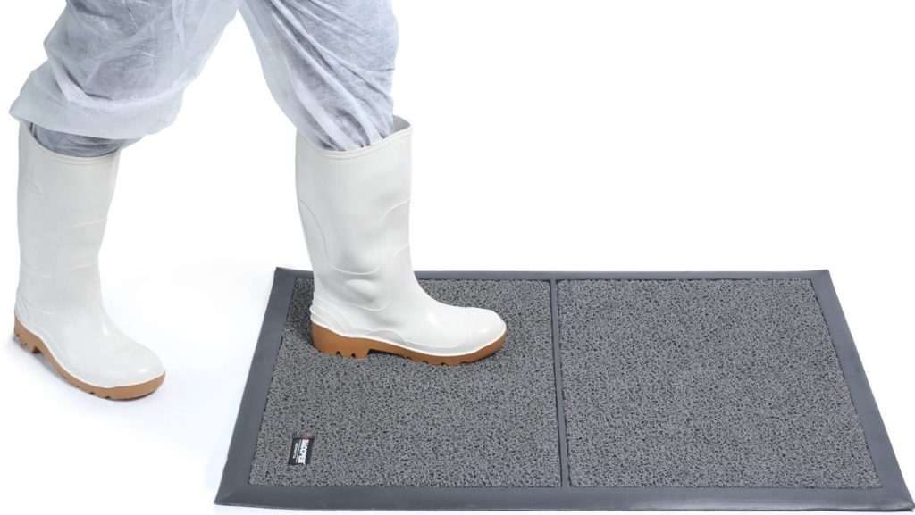 Tikar desinfektan dalam penampilan tidak berbeda dari biasanya. Tapi itu diresapi dengan solusi khusus yang membunuh hingga 90% dari semua mikroba dan virus yang dikenal.