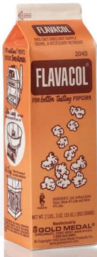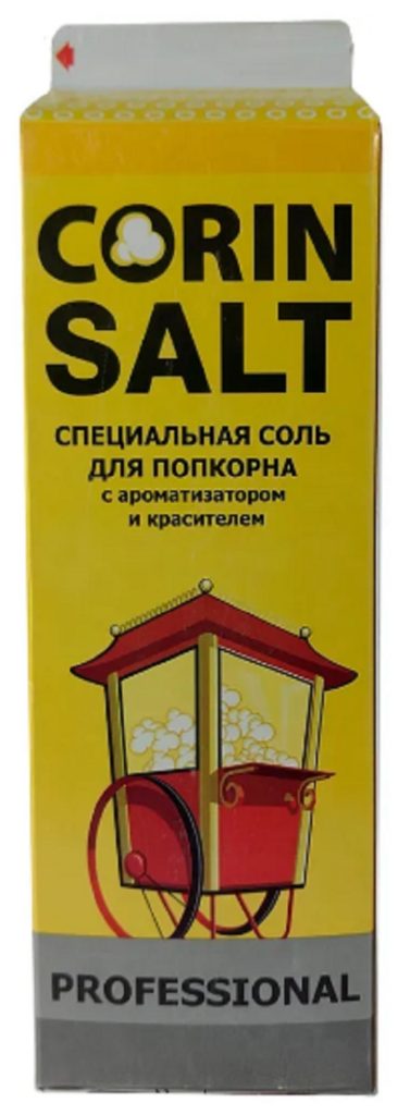 Garam kuning cerah mengandung beta-karoten dan memberi popcorn jadi warna emas yang kaya. Produk digiling sangat halus, hampir berbentuk serpihan, mudah menempel pada jagung yang sudah jadi. Biji-bijian dimasak secara terpisah dan panas ditaburi dengan massa asin.Camilan dingin yang sudah jadi dapat diletakkan dalam wadah dan menikmati camilan di tempat kerja atau menonton film baru di home theater.