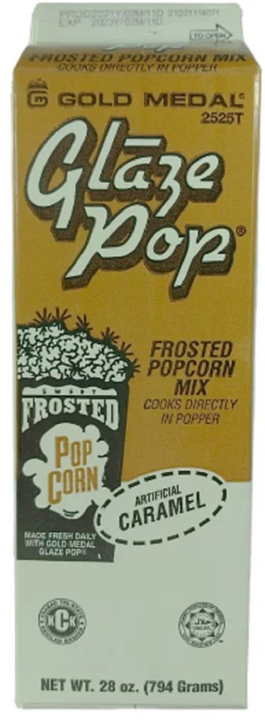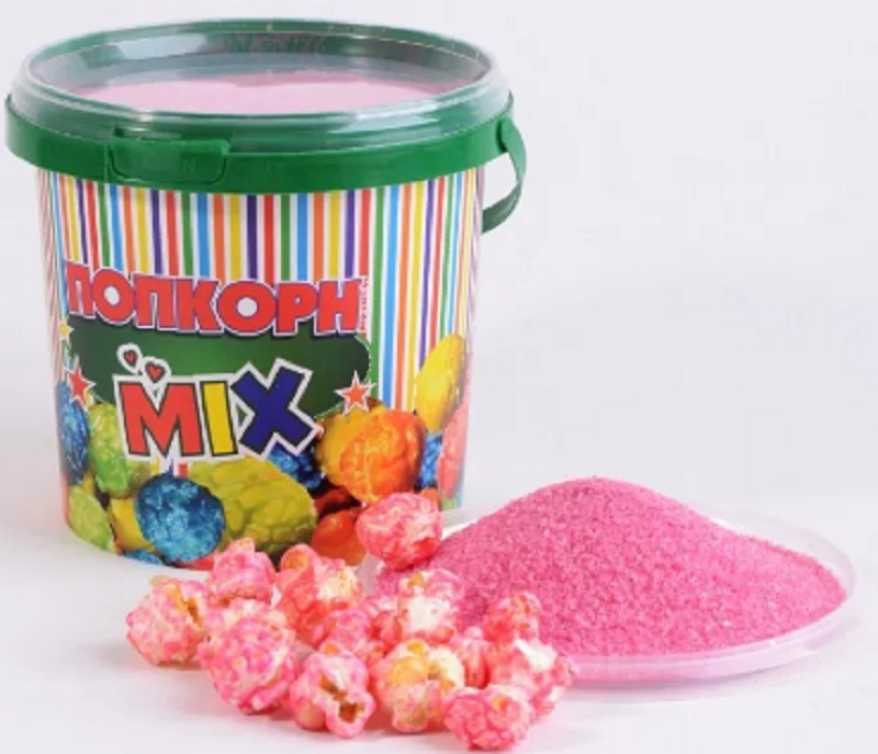 Bubuk untuk membuat camilan manis dari biji jagung tersedia di pasaran dalam beberapa rasa populer: ceri, stroberi, beri liar, apel. Bubuk dijual dalam ember, yang sangat nyaman untuk disimpan, yang jangka waktunya hampir 2 tahun. Campuran paling baik ditambahkan ke produk jadi. Jika tidak, pembakaran diamati. Dapat digunakan di mesin popcorn tanpa tambahan bahan anti lengket.