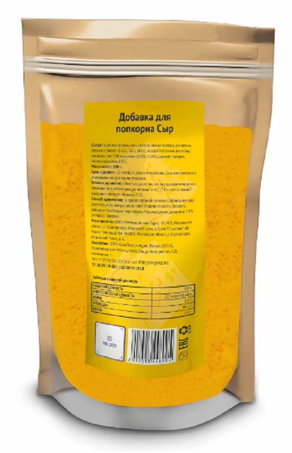 Penyedap rasa buatan Rusia ini mudah digunakan dan memberikan hasil yang baik bagi pecinta popcorn. Anda hanya perlu menuangkan takaran yang ditunjukkan bersama dengan biji-bijian ke dalam mesin memasak atau ke dalam panci dan memulai prosesnya. Beberapa menit, dan camilan favorit Anda sudah siap. Garam memberi produk jadi warna yang menarik dan rasa keju yang asin. Komposisinya meliputi pewarna dan perasa.