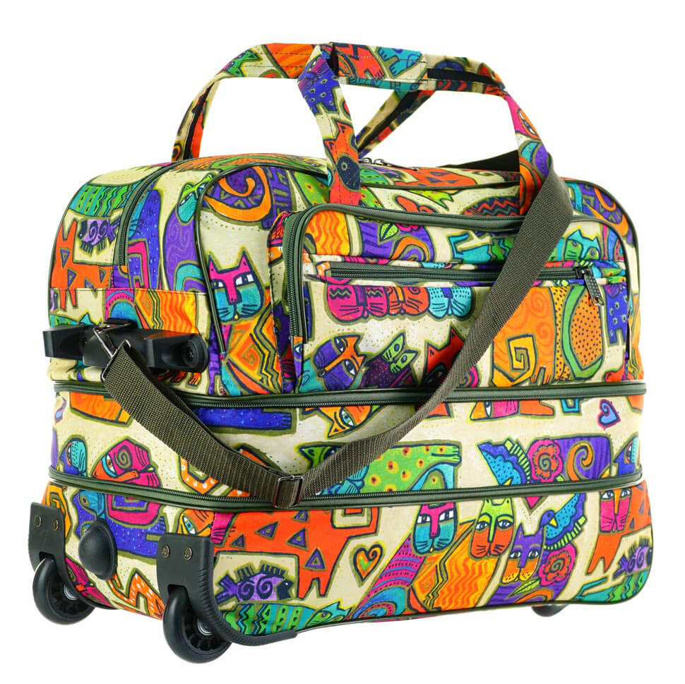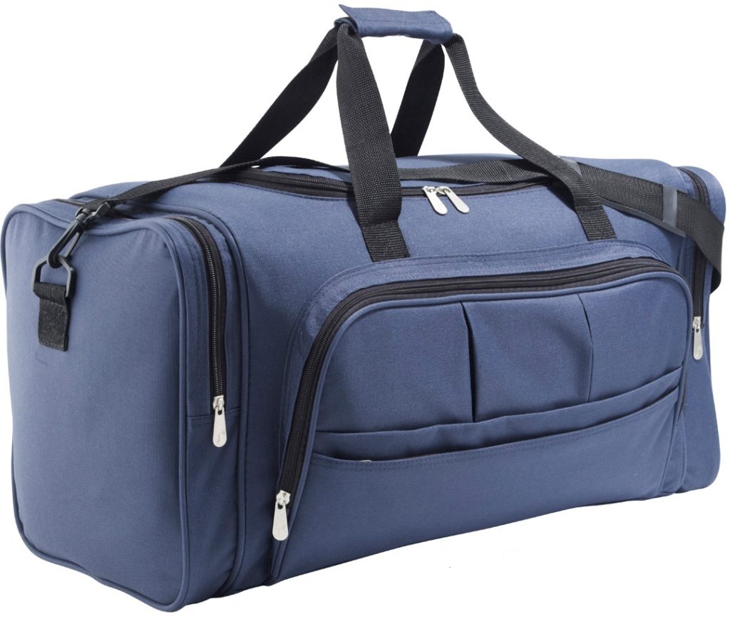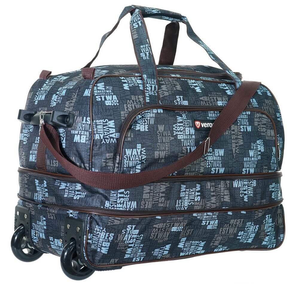 Atribut perjalanan wanita ini juga terbuat dari poliester berkualitas tinggi yang tahan lama dengan dimensi 44x32x23 cm, sangat nyaman sebagai tas tangan.Saku kecil di samping memungkinkan Anda untuk meletakkan barang-barang kecil di dalamnya. Di dalam struktur ada kompartemen tambahan lainnya. Panjang maksimum tali untuk dikenakan di bahu mencapai 120 cm, harganya mulai 800 rubel.