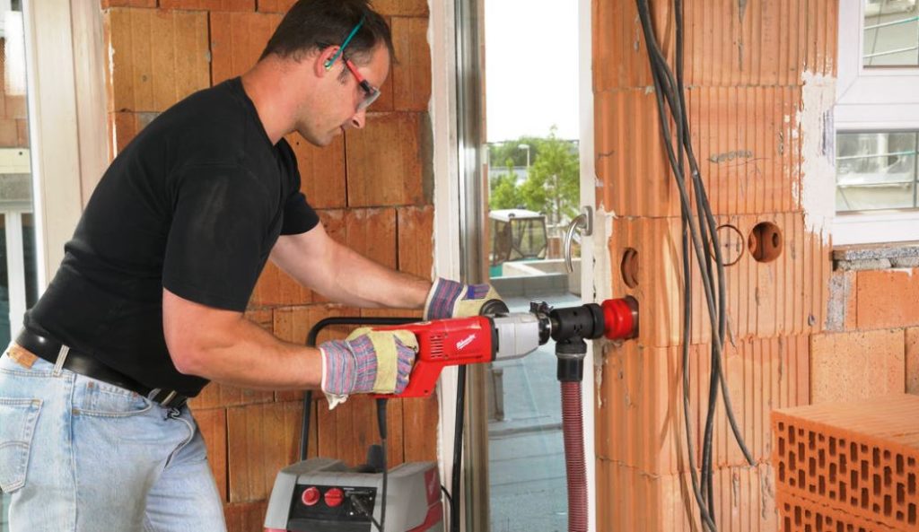 Untuk membuat lubang besar, disarankan untuk menggunakan model profesional yang dapat dipasang pada rak atau dudukan khusus. Contohnya adalah DeWalt D-215-85, yang dapat membuat lubang pada beton dengan diameter hingga 25 cm.