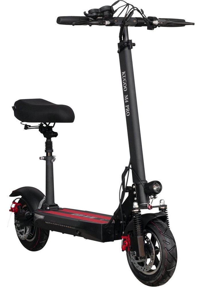 Kugoo M4 Pro dilengkapi dengan alarm, lampu sein, lampu rem dan lampu depan. Bobotnya banyak, tetapi pada saat yang sama mampu berakselerasi hingga 55 km / jam. Harga rata-rata adalah - 26.500 rubel.