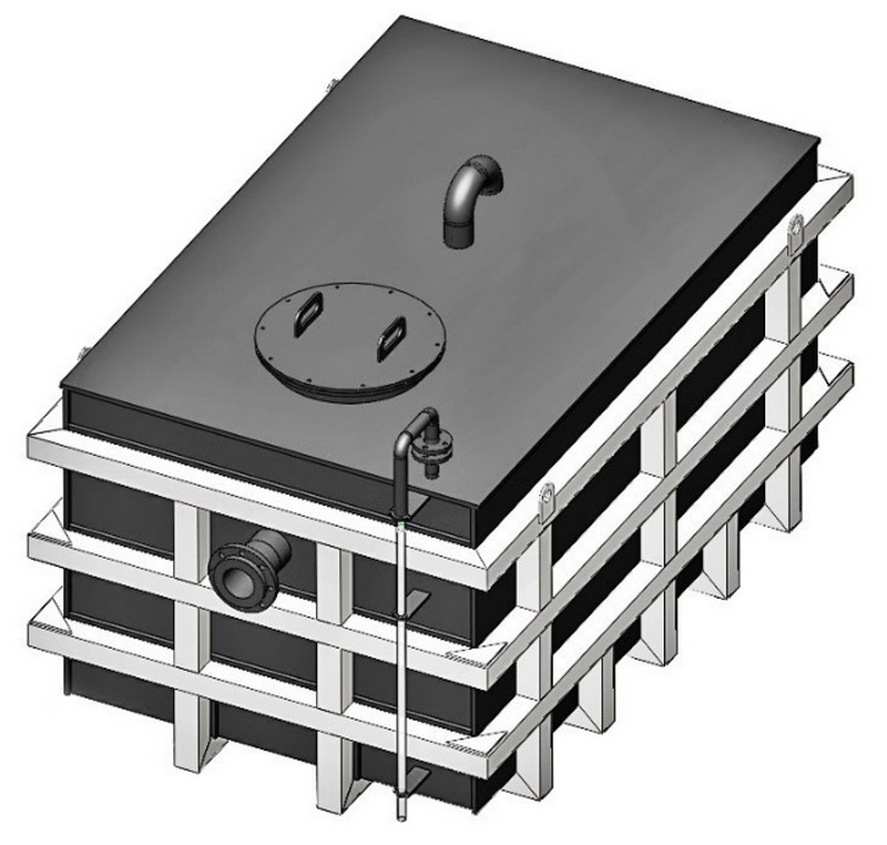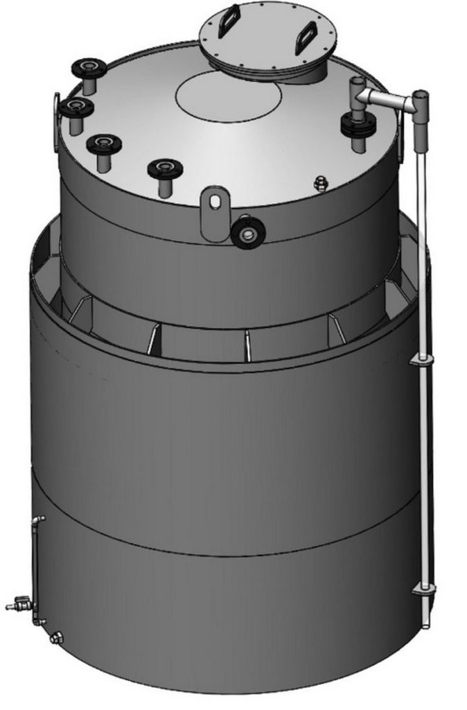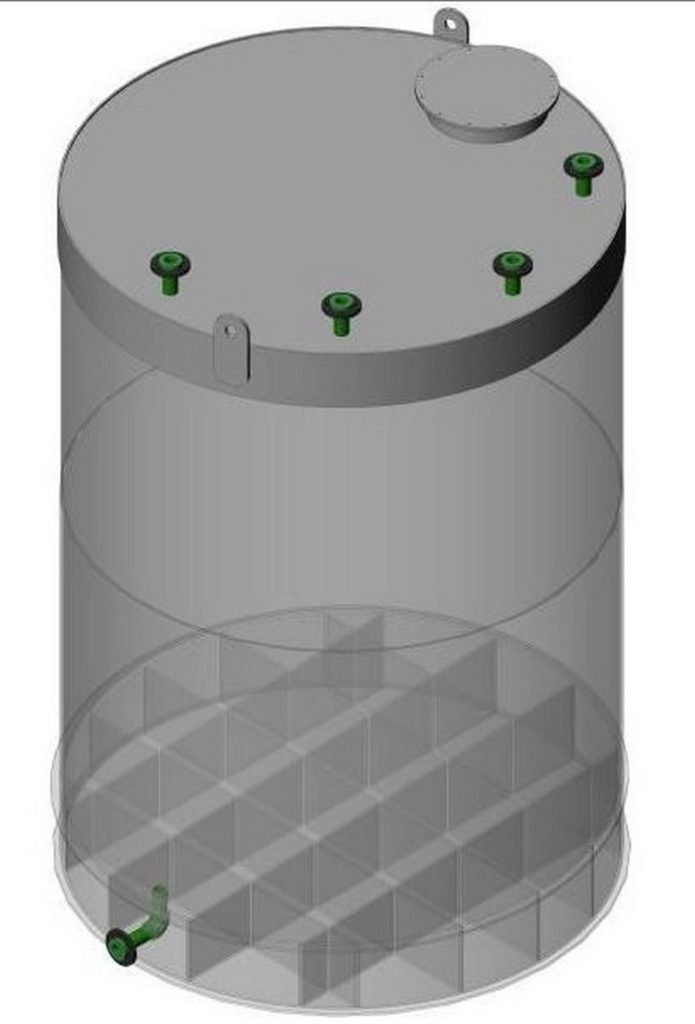 Tangkinya berbentuk silinder vertikal, berdinding ganda, terbuat dari PVC berkualitas tinggi, dirancang untuk mengumpulkan dan menyimpan media yang sangat agresif. Dinding ganda mencegah isi tumpah jika bodi utama pecah. Bahan dan ketebalan dinding dipilih berdasarkan kondisi dan fitur operasi. Desainnya diuji secara menyeluruh untuk keandalan dan kekuatan dalam program CAD khusus. Pemotongan material dilakukan pada mesin penggilingan CNC presisi tinggi, yang memastikan penyambungan bagian yang sempurna. Bagian silinder dibuat pada mesin butt khusus dengan presisi pengelasan tinggi. Perkiraan umur layanan setidaknya 20 tahun. Biaya yang disarankan untuk rantai ritel adalah 15.000 rubel.