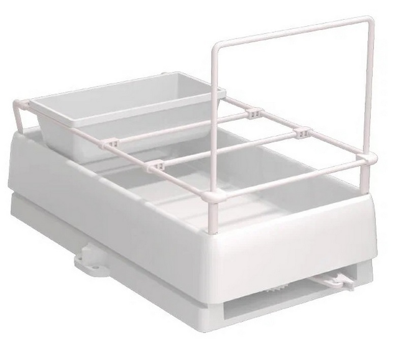 Aksesori penyimpanan built-in yang ringkas ini untuk kamar mandi atau binatu rumah. Aksesori ini dilengkapi dengan pembagi untuk pengaturan cairan dan zat lain yang rasional dan nyaman untuk barang-barang kecil. Dapat dibangun menjadi alas dengan lebar minimal 300 mm. Untuk perawatan, Anda bisa menggunakan air dan deterjen agresif. Ada dua opsi pemasangan - ke bagian bawah bingkai atau ke fasad universal (kiri / kanan). Biaya yang disarankan untuk rantai ritel adalah 8700 rubel.
