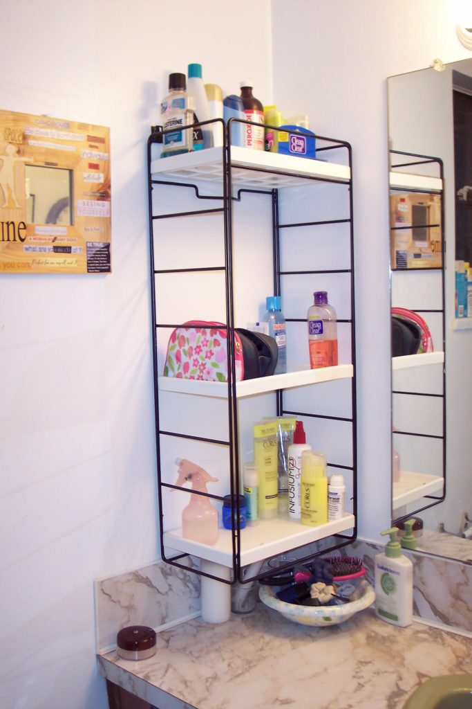 - Rak sudut - desainnya memungkinkan untuk memaksimalkan penggunaan ruang kosong dan akan menjadi pilihan yang sangat baik untuk kamar mandi kecil.