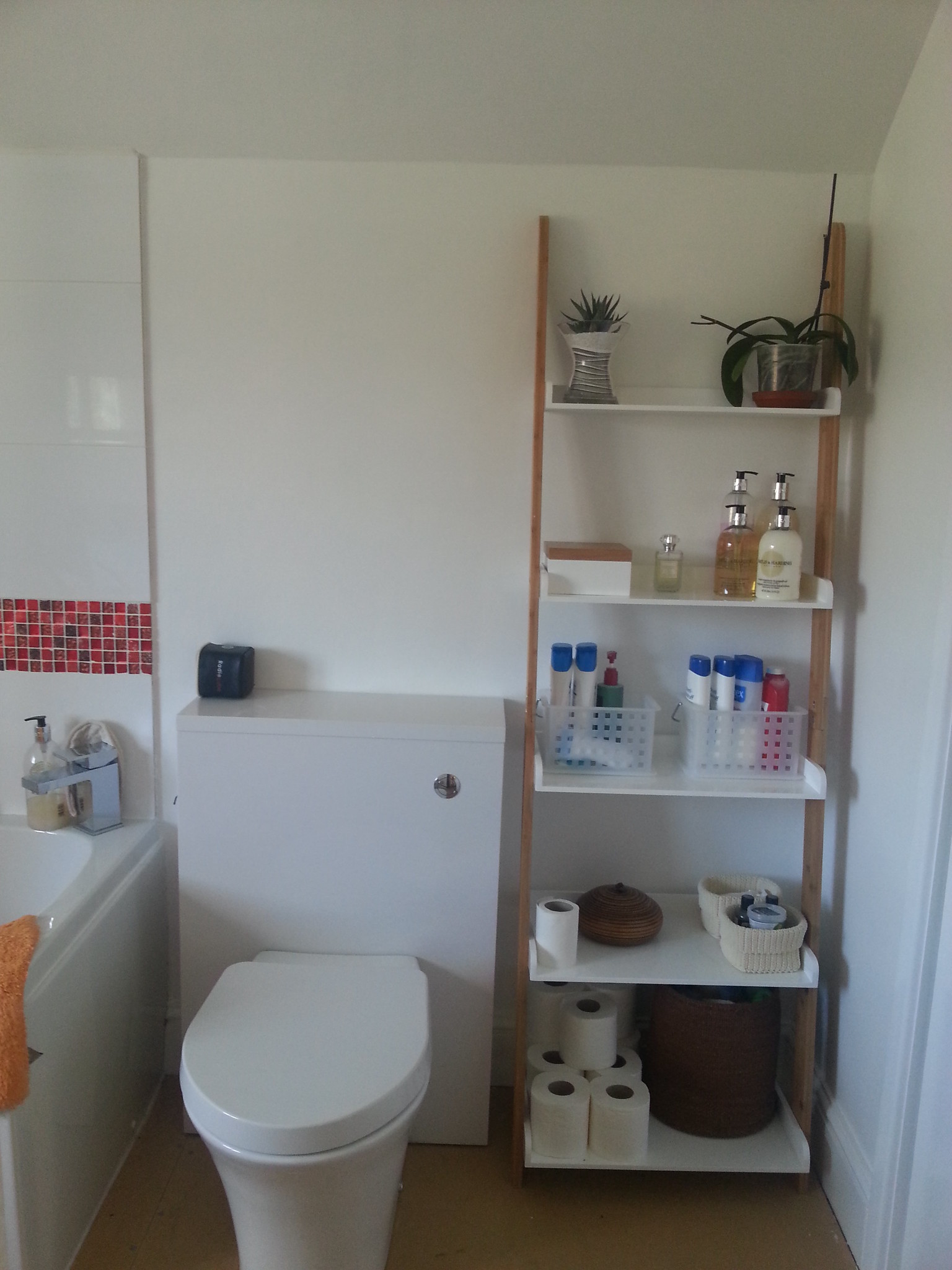 - Penting untuk menempatkan rak sempit yang tinggi di dinding yang jauh, sehingga akan jauh lebih nyaman untuk menyimpan berbagai aksesori dan aksesori mandi. Sedangkan model yang lebih lebar bisa dipasang di atas wastafel atau toilet.