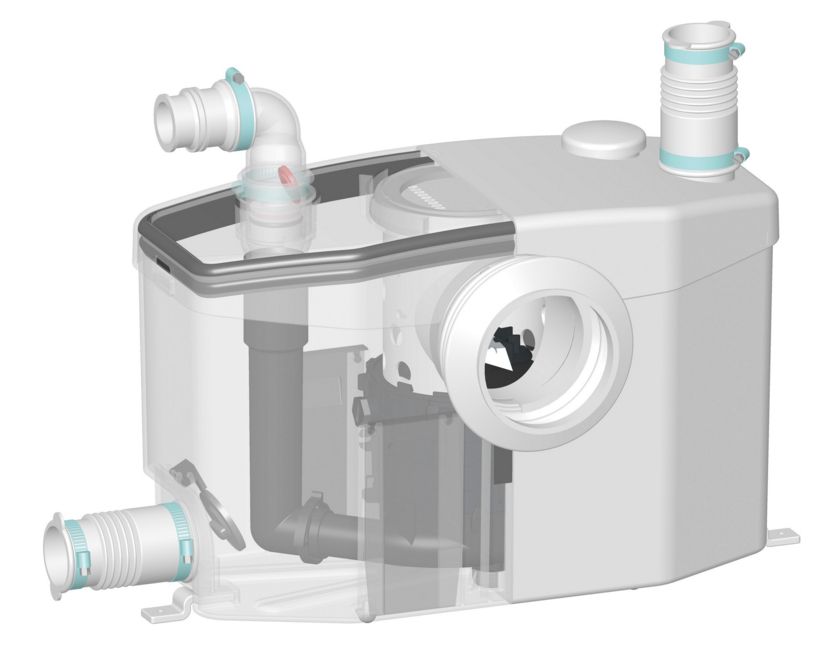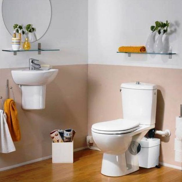 Jenis pompa ini mengacu pada instalasi saluran pembuangan permukaan. Cocok untuk sambungan ke toilet atau wastafel, cocok untuk digunakan di rumah pribadi dan gedung apartemen.