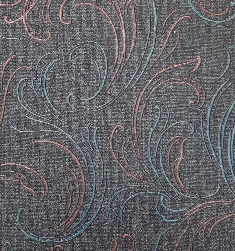 Ornamen dibuat dengan warna biru tua, dan teksturnya, menyenangkan saat disentuh, akan memberikan kenyamanan dan kenyamanan pada permukaan dinding. Bahannya sangat cocok untuk ruang tamu, kamar tidur, kamar bayi, koridor. Biasanya, produk semacam itu dibeli untuk dekorasi apartemen untuk disewakan dan untuk apartemen dijual, di mana masalah harga dan kepraktisan seringkali menjadi lebih penting daripada dekorasi. Biaya yang disarankan untuk rantai ritel adalah 940 rubel.