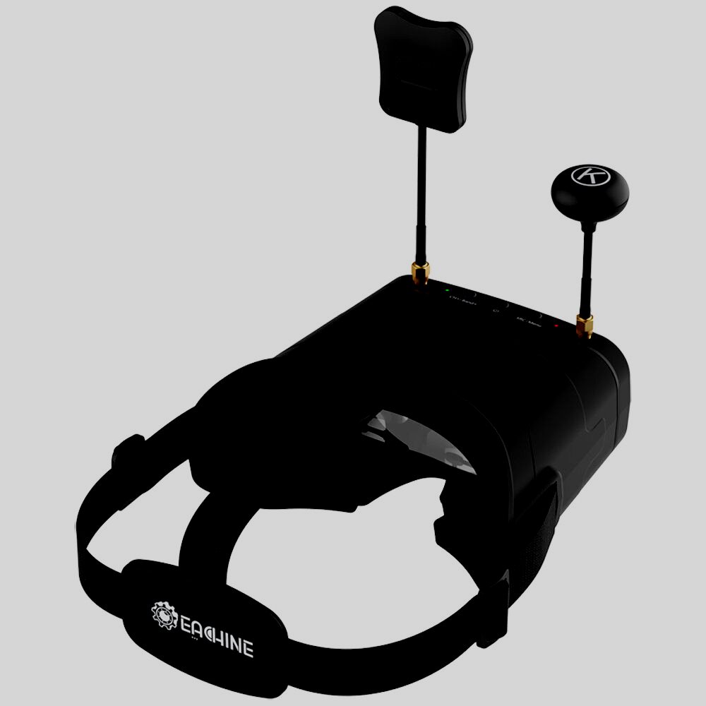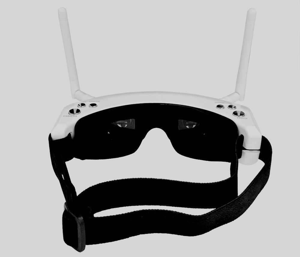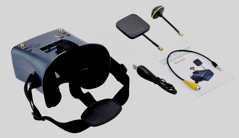 Helm praktis tidak berbeda dalam penampilan, terlepas dari pabrikan dan biaya, serta fungsinya. Mereka memiliki bentuk persegi panjang lonjong, dua tali digunakan sebagai pengikat ke kepala. Interiornya sederhana: satu lensa besar dan satu layar FPV. Yang terakhir adalah layar kecil dengan pelindung untuk penerimaan video. Berdasarkan tujuannya, tidak relevan untuk drone balap.