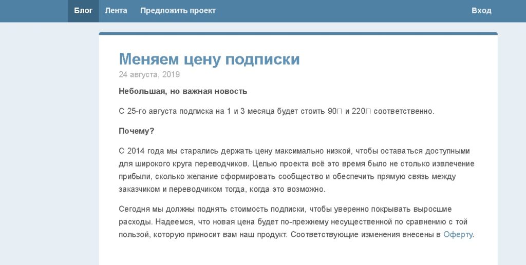 Payload langsung dibawa oleh bagian pertama, di mana pengumuman tentang layanan terjemahan yang diperlukan diterbitkan. Umpan memposting aplikasi baru, dan blog membawa muatan informasi dan pengembangan.