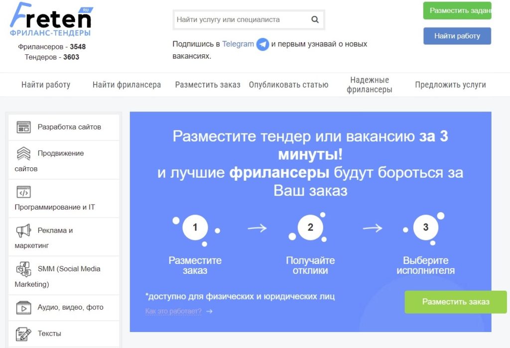 Freten menyediakan distribusi gratis pesanan baru ke saluran Telegram dan email, menyelamatkan freelancer dari keharusan mencari tender sendiri. Tetap hanya memilih urutan minat dan menghubungi majikan. Akun pribadi itu sederhana dan nyaman, tidak mengandung sesuatu yang berlebihan, yang menyederhanakan pekerjaan. Di bagian "Posting Artikel", freelancer dapat mempublikasikan artikel mereka sebagai iklan dan promosi layanan yang diberikan. Freten cocok untuk pemula dan profesional berpengalaman di bidang aktivitas apa pun.