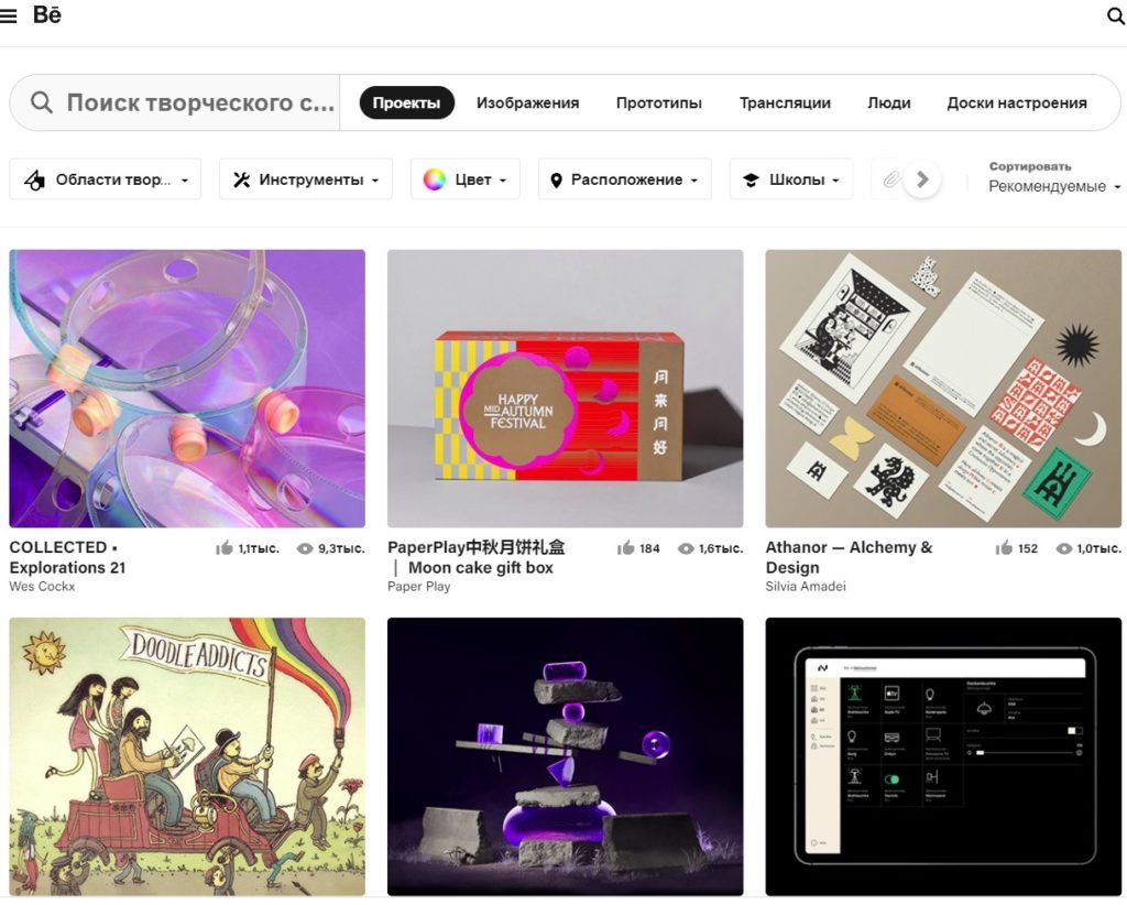 Di sini, peringkat diakumulasikan karena jumlah total ulasan positif, dan semakin banyak, semakin tinggi peluang untuk tertarik pada proyek besar. Selain fungsionalitas standar, Behance memiliki kemampuan jaringan sosial untuk berkomunikasi dengan desainer platform lain dan berbagi pengalaman.Di bagian lowongan, Anda dapat berkenalan dengan profil spesialis terkemuka dengan reputasi tinggi.