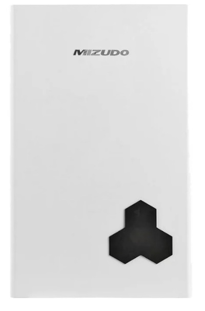 Geyser dengan pemanas air instan, tipe klasik. Perangkat ini dilengkapi dengan serangkaian fungsi, termometer, tampilan, dan sakelar yang diperlukan. Pemasangan di dinding secara vertikal.