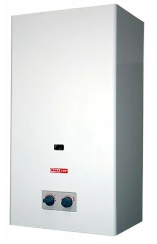 Pemanas air gas mengalir dengan ruang bakar terbuka dan pengapian piezo. Di outlet, secara otomatis mempertahankan suhu air, perangkat ini dilengkapi dengan pembatas pemanas cair, kontrol mekanis, dan kontrol gas.Adapun pemasangan: vertikal, dengan koneksi bawah. Desain sederhana: kotak logam persegi panjang putih dengan tuas kontrol ayunan hitam.
