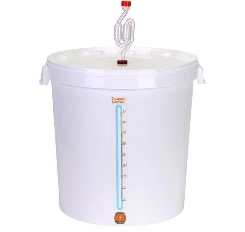 Perangkat ini juga disebut kastil air, ada model yang dijual yang disajikan dengan nama di atas. Inti dari perangkat ini adalah pemisahan karbon dioksida dari tumbuk. Misalnya, saat membuat sari buah apel, Anda perlu mendapatkan starter, lalu mengeluarkan vodka atau anggur. Untuk mendapatkan starter, buah diperas (di musim non-musim panas, massa gula dicampur) dan dipanaskan lebih lanjut. Campuran yang dihasilkan dilengkapi dengan ragi, setelah itu dikirim ke kompartemen tangki. Setelah menambah ukuran campuran, perlu untuk menutup wadah untuk mencegah masuknya oksigen. Jika oksigen masuk, massa yang disiapkan akan menjadi asam dan cuka akan berubah. Jika tidak (jika Anda membiarkan penyegelan berlebihan), ada risiko ledakan di dalam wadah karena pertumbuhan ragi yang lambat.