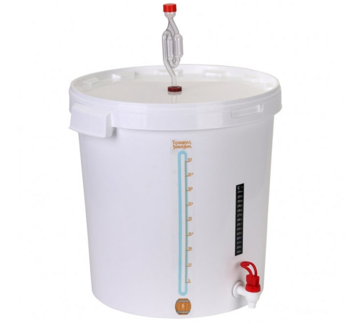 Posisi ini berbeda dari posisi sebelumnya dengan adanya termometer untuk pemantauan suhu yang nyaman. Berkat termometer, lebih mudah untuk memantau proses fermentasi, ini akan memungkinkan Anda untuk dengan cepat beralih ke tahap memasak berikutnya. Desain ini memungkinkan Anda untuk dengan mudah menyiapkan minuman dengan komposisi yang kompleks.