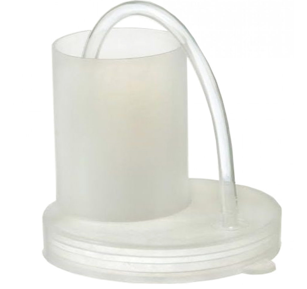Itu terlihat seperti tutup polietilen dengan kaca berbentuk silinder di tengahnya. Di kaca ada departemen untuk menghilangkan gas, yang dapat ditutup dengan penutup untuk kenyamanan. Penting untuk mempertimbangkan bahwa kekhususan polietilen tidak akan memungkinkan Anda untuk memantau proses di dalam sistem dengan hati-hati karena transparansi yang rendah.