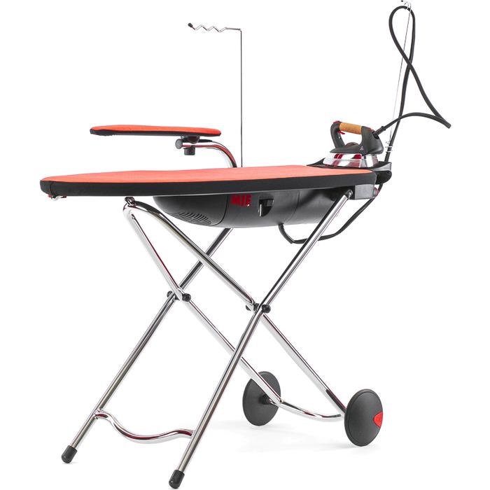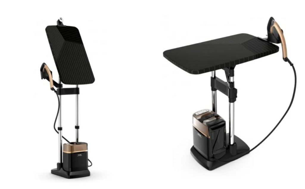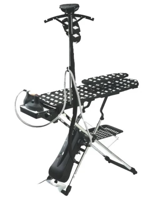 Sistem tipe steam-jet multifungsi untuk perawatan pakaian. Ini fitur permukaan kerja yang luas yang memungkinkan Anda untuk menempatkan barang-barang besar.