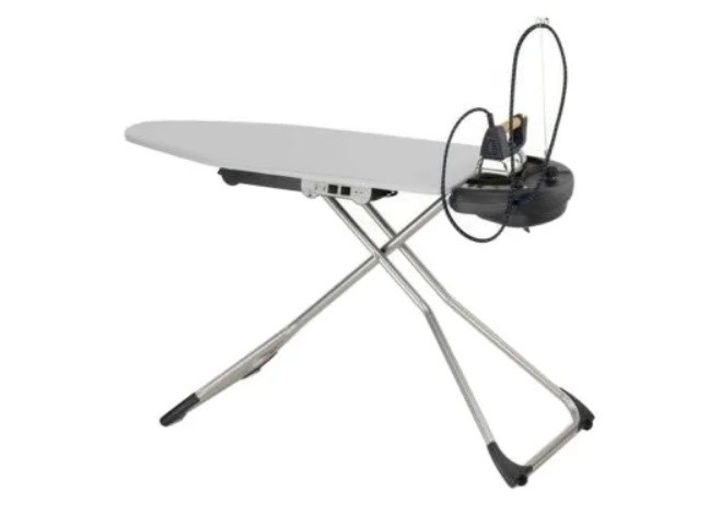 Papan dilengkapi dengan fungsi-fungsi berikut: tekanan - menciptakan bantalan udara di bawah kain; vakum - memperbaiki pakaian agar tidak terpeleset. Rak linen menghemat ruang.