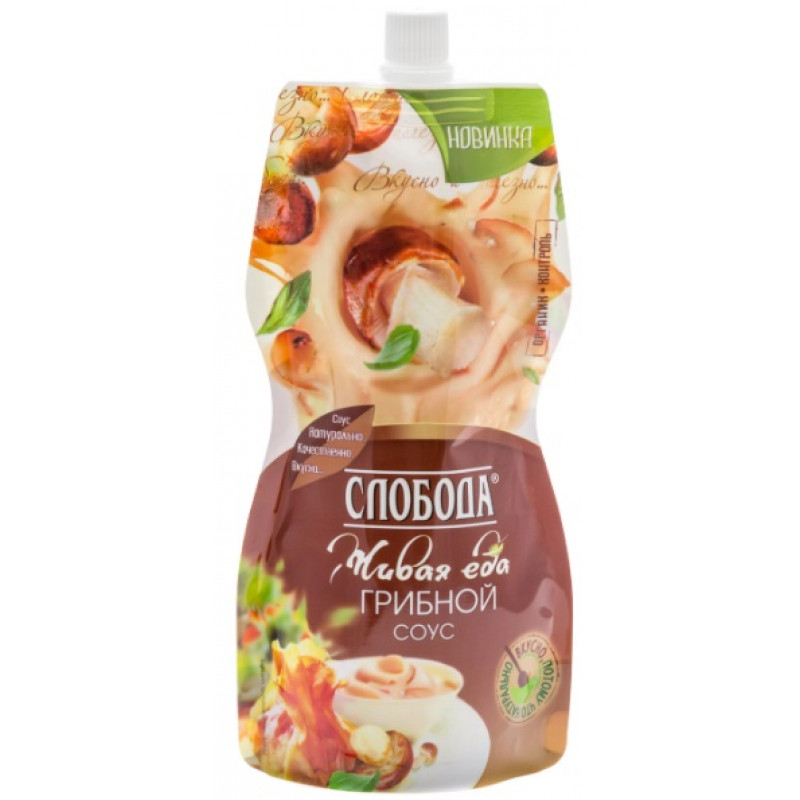 Saus jamur dengan prebiotik terbuat dari jamur hutan kering, yang dikumpulkan di Altai. Diproduksi dalam botol kaca, yang sedikit mirip dengan botol susu era Soviet. Label yang direkatkan pada botol berisi informasi dari produsen tentang komposisi produk, nilai gizi dan energi, kondisi, syarat produksi, dan penyimpanan produk. Botol dilengkapi dengan tutup logam, awalnya tertutup rapat dengan foil.