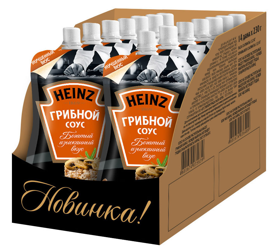 Kemasannya berwarna coklat. Di sisi depan doypack, jamur porcini digambarkan, dan di belakang ada informasi lengkap tentang komposisi dan karakteristik produk. Tutup sekrup awalnya disolder hingga putaran pertama. Mulut bungkusnya cukup lebar untuk memberi dosis saus dengan nyaman.