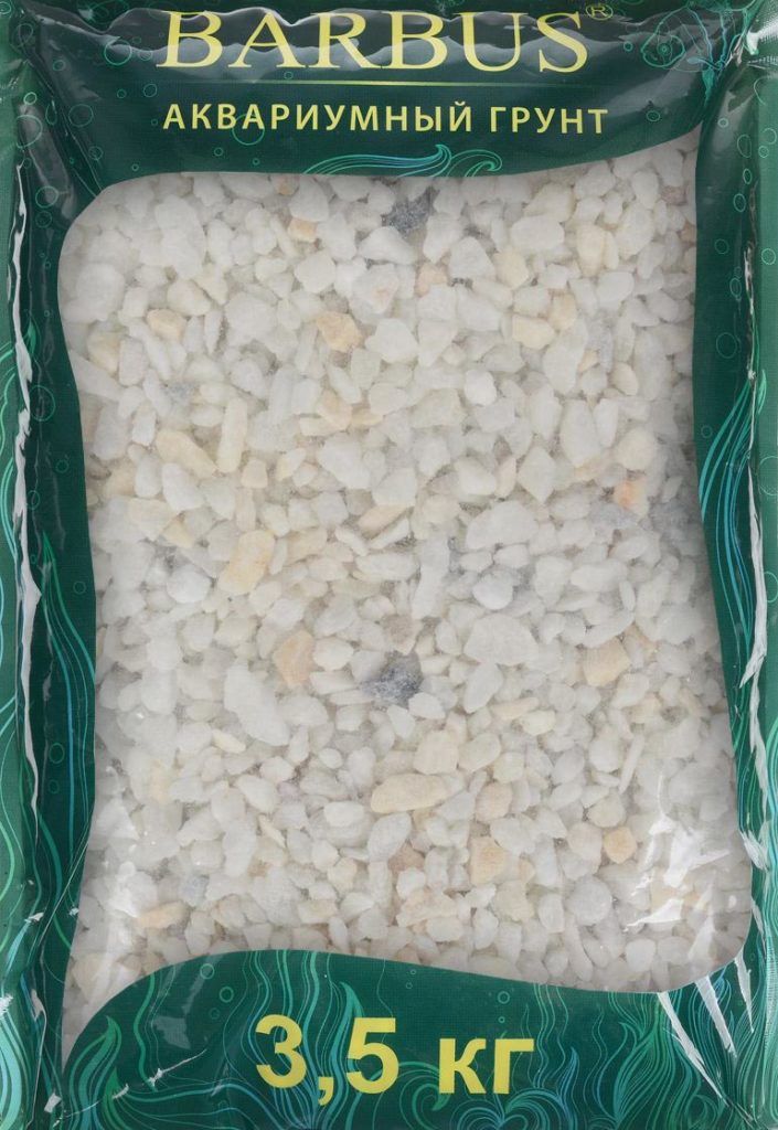 Dirancang untuk akuarium air tawar, ini adalah remah batu (marmer) yang berasal dari alam. Ini diproduksi oleh pabrikan Rusia Barbus dan beragam dalam warna dan fraksi - ada primer putih, hitam dan berwarna. Ukuran partikel juga bervariasi - dari 2-5 mm hingga 5-10 mm, yang memungkinkannya digunakan untuk akuarium dengan ukuran berbeda.