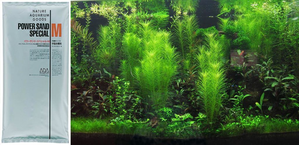 Campuran jenis ini mengandung berbagai pupuk mineral, gambut, zat bermanfaat dan bakteri, bahan berpori. Campuran seperti itu sangat cocok untuk tanaman air, serta untuk membuat akuarium nano atau Belanda. Selain itu, campuran nutrisi Power Sand Special M (ADA) digunakan di tambak udang, menjadi bahan makanan yang baik untuk udang. Memurnikan air dengan sempurna dari racun dan zat berbahaya, untuk waktu yang lama memiliki efek stimulasi jangka panjang pada pertumbuhan tanaman akuarium. Biaya rata-rata untuk 1 paket dengan berat 6 kg adalah 4.000 rubel.