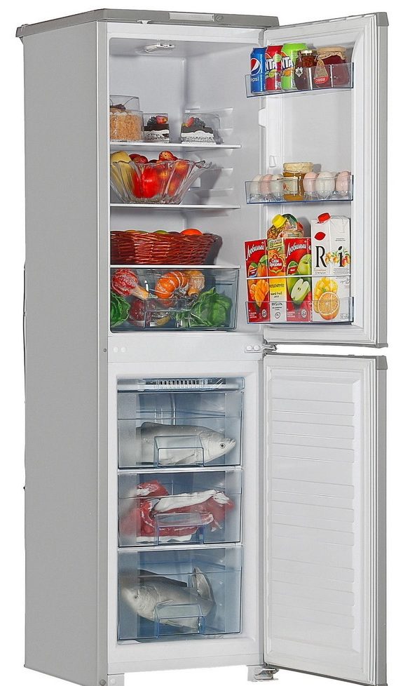 Model ini memiliki ukuran kecil, dan akan menjadi pilihan ideal untuk memberi. Kapasitas lemari es adalah 205 liter, 80 di antaranya berada di bagian freezer. Freezer terletak di bagian bawah, dan memiliki 3 laci makanan yang banyak. Menggunakan perangkat ini, Anda dapat membekukan 7 kg makanan per hari.