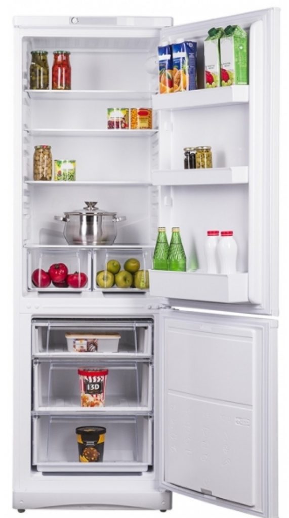 Kulkas berukuran kecil, tetapi akan menjadi pilihan ideal untuk keluarga besar.Volume total perangkat adalah 318 liter, di mana 96 dicadangkan untuk ruang pembekuan. Freezer terletak di bagian bawah perangkat.